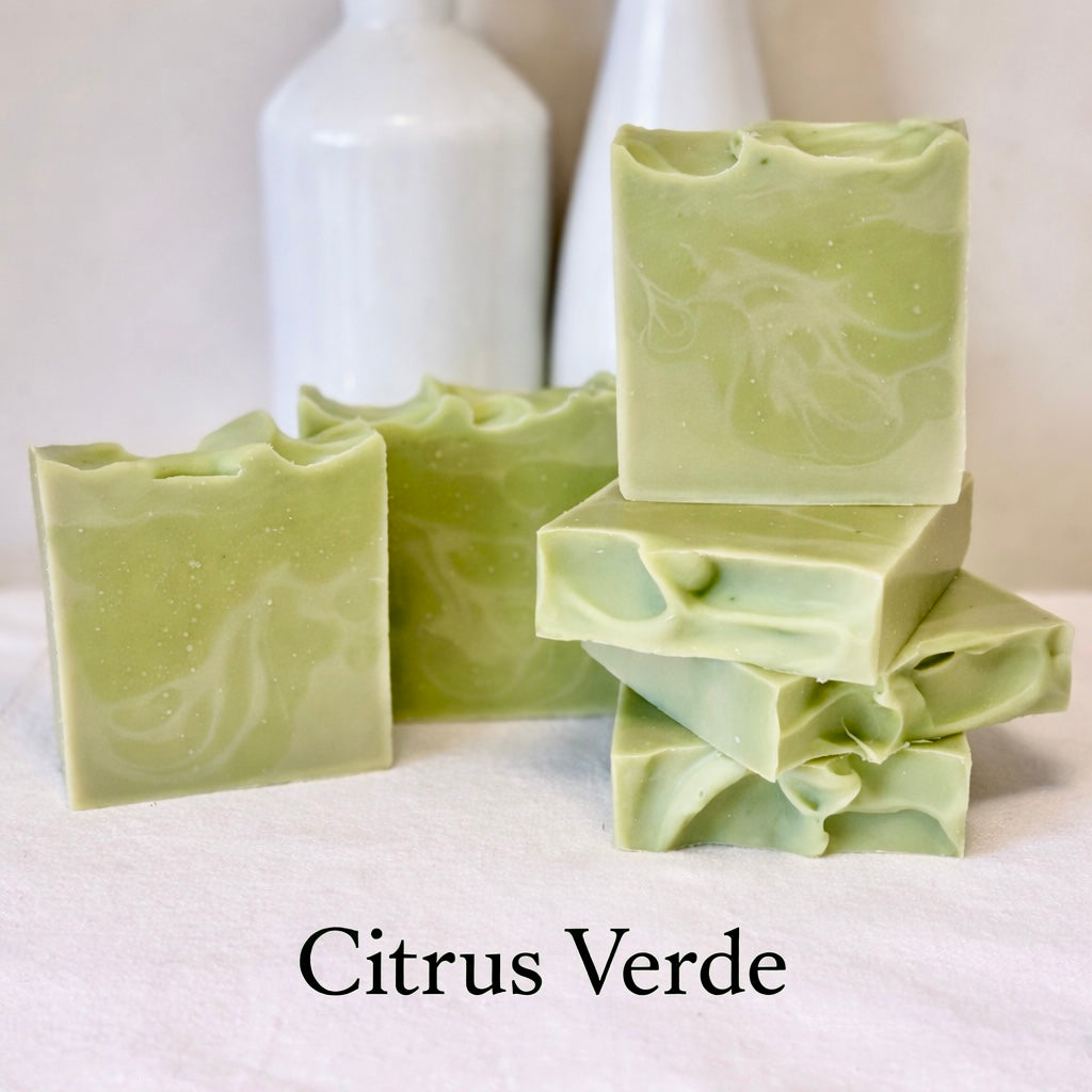 This soap begins in my garden.. fresh rosemary, salvia, lemon balm and lemon peel are steeped into warmed oils, drawing out their colour, properties, and aroma. giving this bar its beautiful natural green and a fresh, herbaceous scent with a hint of citrus. Clean, grounding, earthy, and deeply comforting.
